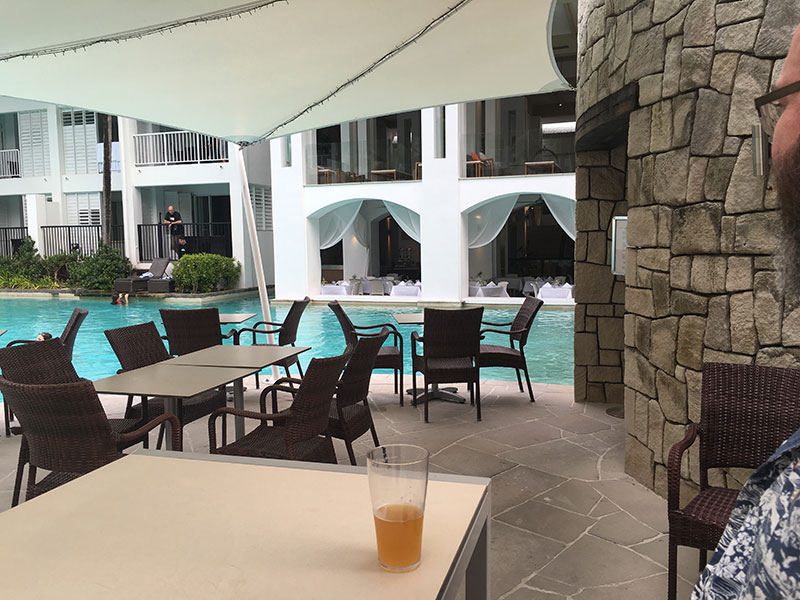 We decided to have a sticky beak and found that they have a small restaurant and bar overlooking a man mad beach and pool area. We had a beer at the bar overlooking the pool. With rooms adjacent to the pool there were kids and adults alike swimming and playing in the water. While it was late in the afternoon I would imagine that kid noise would be a problem if you were staying there.