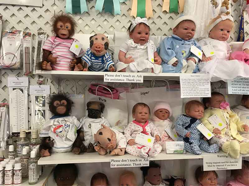 We set off on a walk along the main strip of shops in Hahndorf. There were all sorts of shops to look at from gifts, cheese, souvenirs and cafes. One of the weirdest things we saw was in a gift shop. There was a line up of dolls that were sitting on a shelf in a line and on the end was a couple of baby monkeys dressed up in baby clothes. So weird I asked the owner of the shop if I could take a photo. You can see what I mean in the photo below.